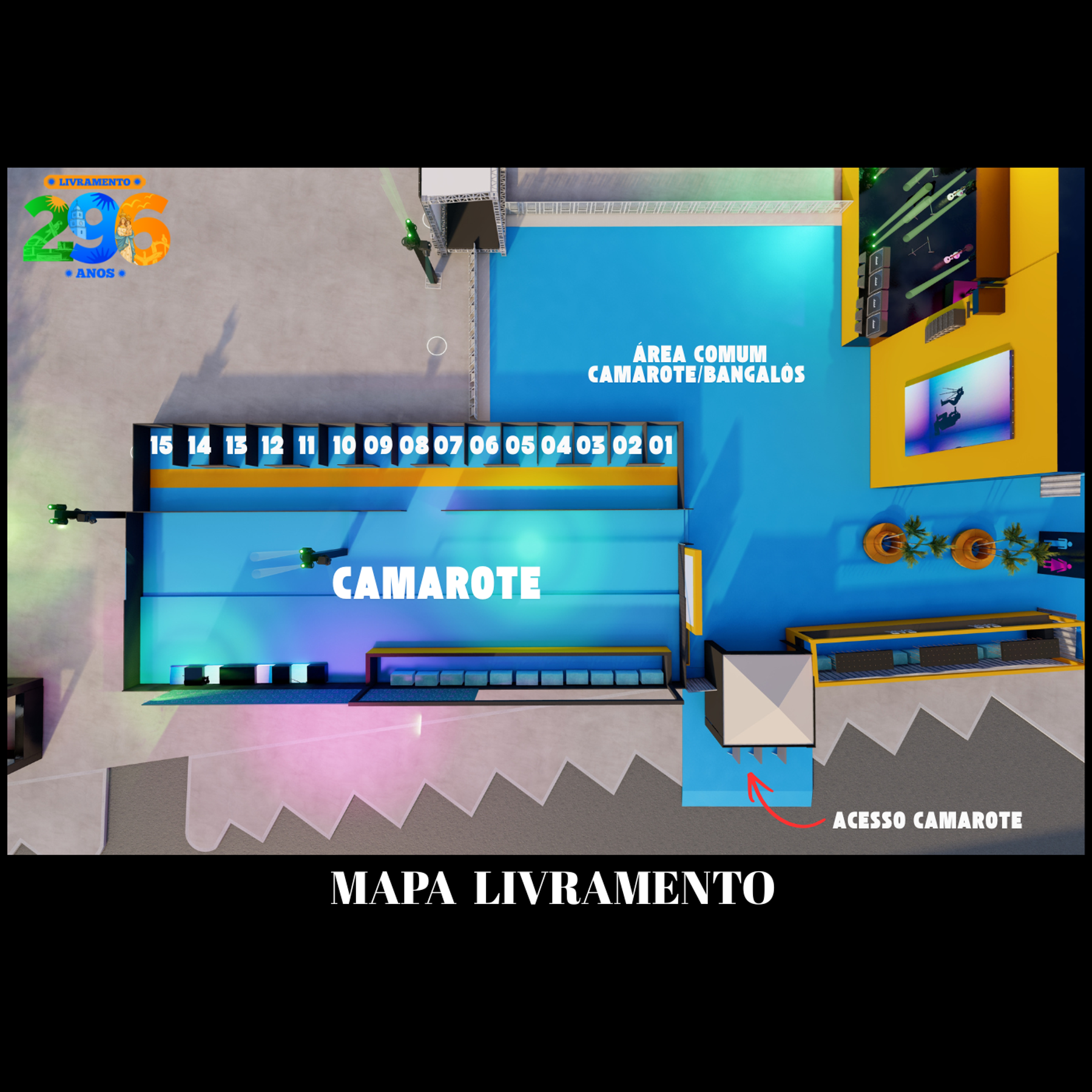 Idoso e PCD pagam meia entrada no camarote, no bangalô pagam normal.